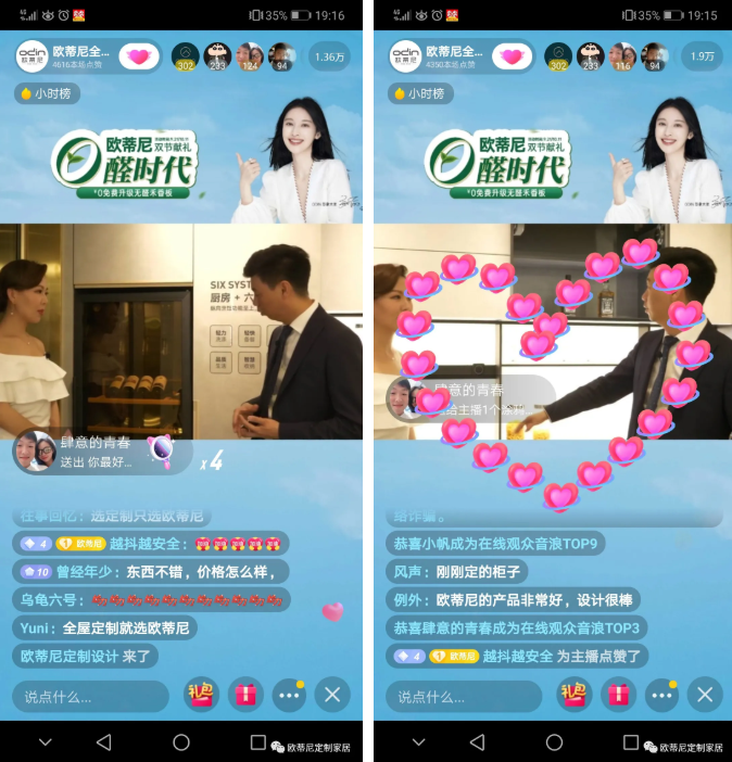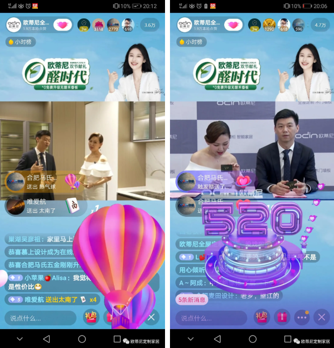 2小時的不間斷直播,瀏覽人數(shù)達5.7萬人次,點贊量達2.7 萬,達成總訂單1294單。此次直播是歐蒂尼集團首次以直播的形式展示歐蒂尼家居品牌。直播分享會在合肥總部進行,全國線上線下門店共同聯(lián)動,以多種形式享受此次優(yōu)惠。