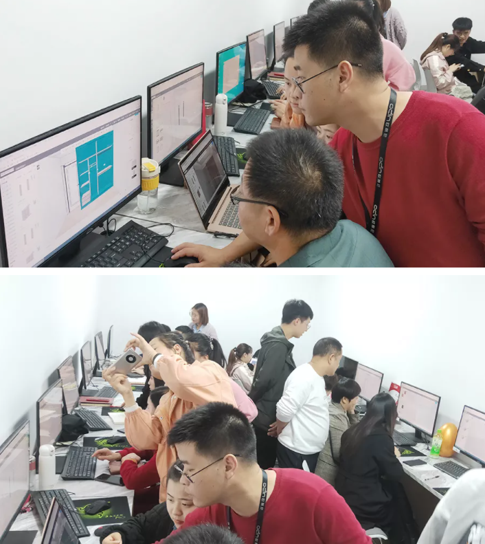 與此同時(shí),商學(xué)院導(dǎo)師對(duì)學(xué)員進(jìn)行軟件系統(tǒng)的培訓(xùn)與實(shí)操。從搭建技巧、結(jié)構(gòu)改造、空間布置,到渲染燈光技巧講解,全程干貨滿滿。其目的是為了讓大家學(xué)會(huì)用設(shè)計(jì)技術(shù)制勝終端,提升市場(chǎng)占有率。學(xué)員們都聚精會(huì)神仔細(xì)學(xué)習(xí)交流。