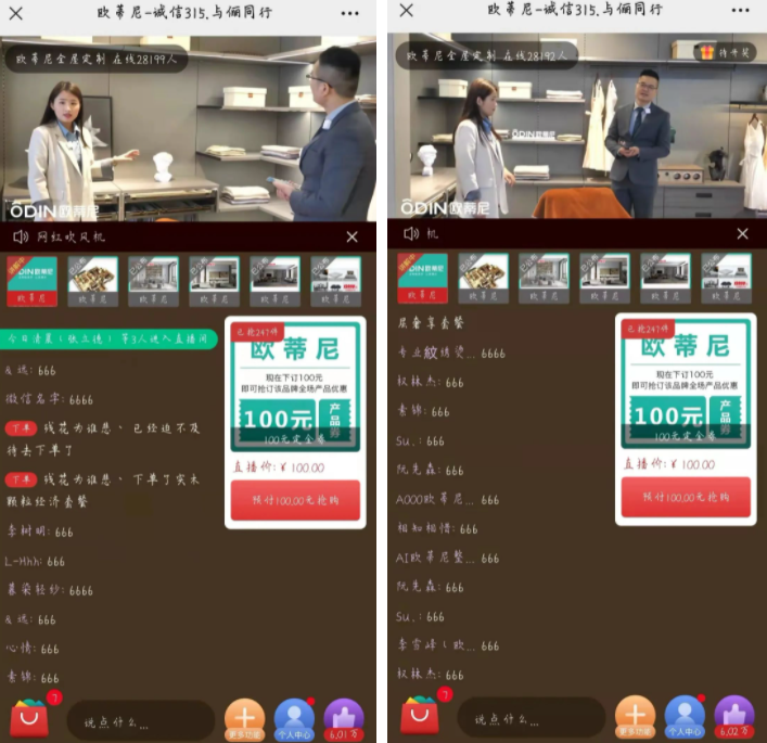 直播期間,大家跟隨鏡頭參觀了歐蒂尼總部新品展廳,探索了整個展廳的設(shè)計亮點、產(chǎn)品風(fēng)格以及產(chǎn)品背后的工藝設(shè)計和理念。滿滿的干貨內(nèi)容和專業(yè)講解,場景化使用的體驗,讓消費者所見即可得。線上粉絲直呼給力,紛紛點贊。