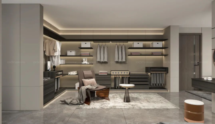 衣帽間設(shè)計和家居設(shè)計的理念是一樣的,最重要的是空間規(guī)劃。通過對空間進行組織變化,營造一個和諧的室內(nèi)環(huán)境,從而達到視覺功能和心理功能的協(xié)調(diào)。