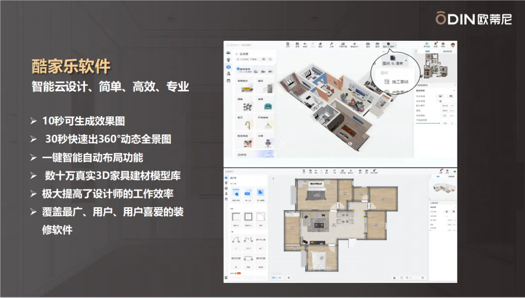 此外,歐蒂尼攜手酷家樂(lè),為門(mén)店注入前所未有的智能活力!一鍵智能布局,輕松解鎖家居設(shè)計(jì)的無(wú)限創(chuàng)意。我們擁有數(shù)十萬(wàn)真實(shí)3D建材模型庫(kù),確保每一份設(shè)計(jì)都能精準(zhǔn)呈現(xiàn),從選材到布局,每一步都盡在掌控之中。這不僅是一場(chǎng)技術(shù)的革新,更是對(duì)美好生活的深度詮釋。選擇歐蒂尼&酷家樂(lè),讓您的家居夢(mèng)想觸手可及,共同開(kāi)啟智能家居的新篇章!