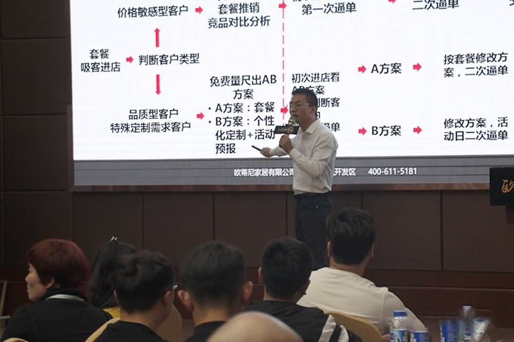 本次特訓(xùn)營(yíng)吸引了歐蒂尼全國(guó)經(jīng)銷商和他們的店面設(shè)計(jì)師、銷售人員、售后服務(wù)人員。他們之間進(jìn)行了溝通,加深了對(duì)歐蒂尼品牌文化的了解,學(xué)習(xí)了歐蒂尼產(chǎn)品的生產(chǎn)工藝、設(shè)計(jì)理念,演練了店面銷售技巧,介紹了當(dāng)前定制家具市場(chǎng)現(xiàn)狀,培訓(xùn)了歐蒂尼售后服務(wù)流程,他們還參觀了歐蒂尼生產(chǎn)車間和最新產(chǎn)品展廳。