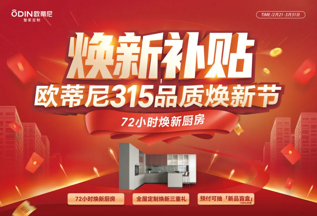 作為新年家居煥新的開(kāi)年首戰(zhàn),歐蒂尼315大促以滿滿的誠(chéng)意回饋全國(guó)消費(fèi)者!活動(dòng)期間,凡訂購(gòu)全屋套餐的顧客,均可尊享“0元升級(jí)”特權(quán),免費(fèi)升級(jí)至2025年春季最新款板材與五金配件,讓您的家居空間瞬間煥發(fā)新生,盡顯時(shí)尚與品味。