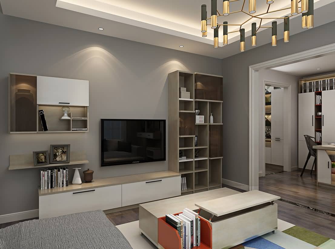 電視柜柜體采用雙面玻璃合頁, 凹凸的層次感正是設(shè)計師理念 的體現(xiàn) |